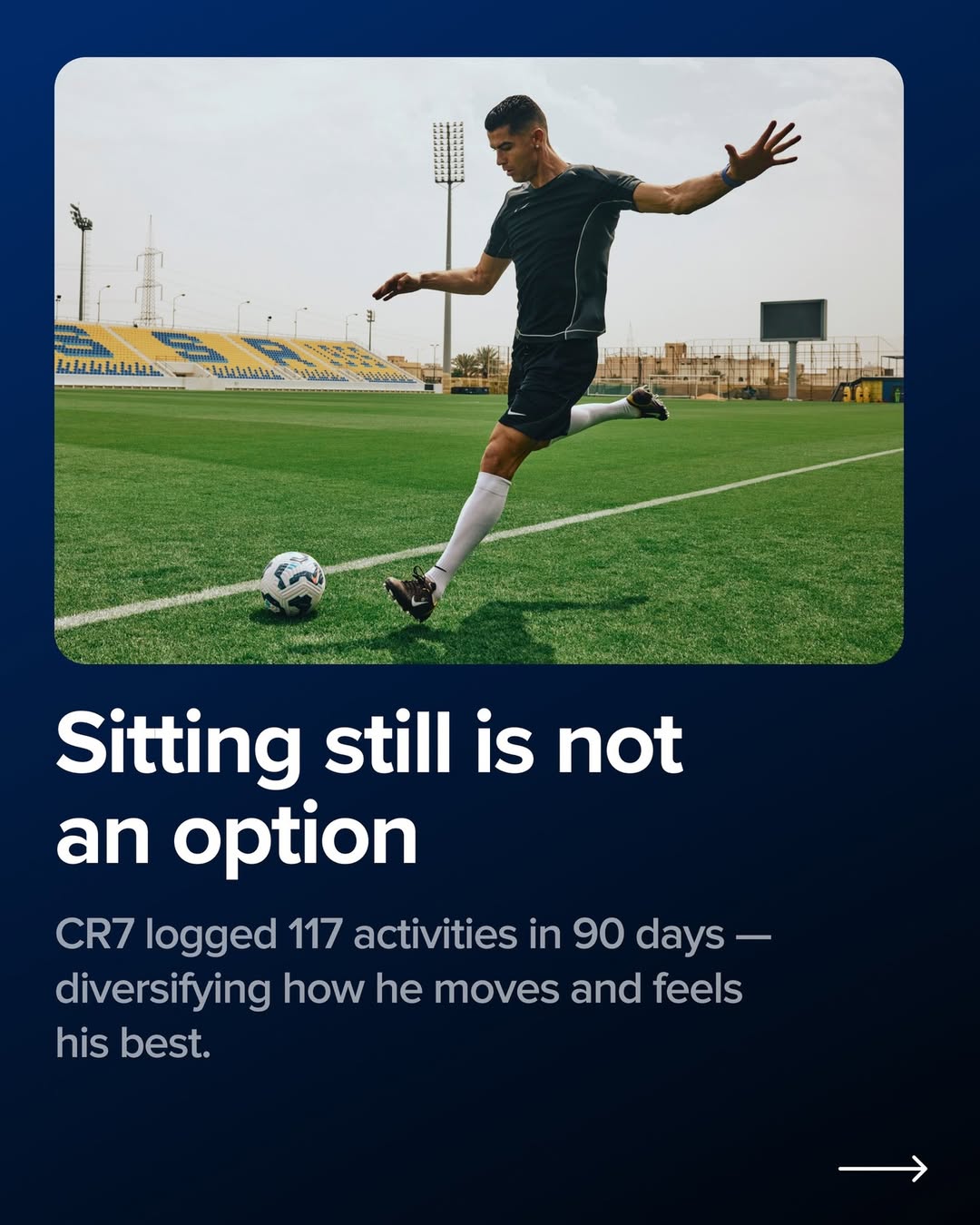数据指出,C罗在90天内记录到了117项活动,他通过多样化的运动方式保持最佳状态。